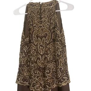 J Kara New York Beaded Evening Gown Dress Size 8 Brown Chiffon Formal Occasion