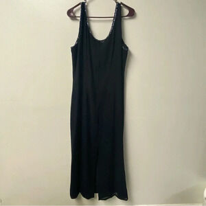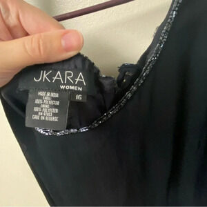 J Kara Vintage Formal Crepe Beaded Neckline Sheath Black Maxi Dress Size 16