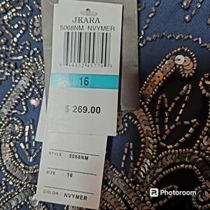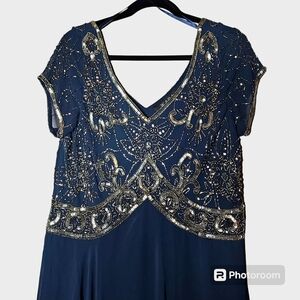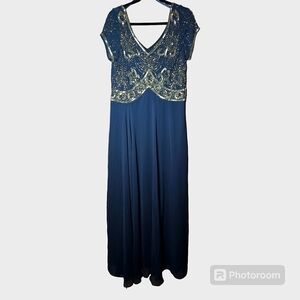 J Kara Women's Cap Sleeve V-Neck Empire Waist Beaded Dress Size 16 NWT