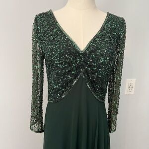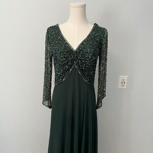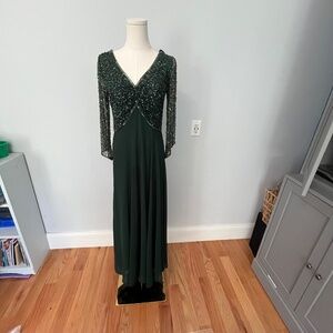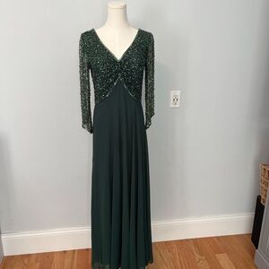 J Kara Women's Handmade Beaded V-Neck Gown, Hunter Green, 16