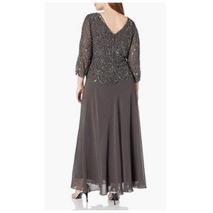 J Kara Women's Plus Size 3/4 Sleeve with Scallop Beaded Pop Over Gown