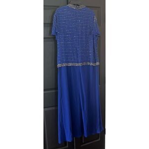J Kara Women's Plus Size Faux Wrap Long Dress W/Flutter Sleeve