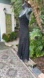 This versatile dress starts with adjustable, spaghetti straps. There is a sheer , chiffon overlay that has been overbeaded at the bodice and at the waist. The ruffled ham is slightly asymmetrical. Dress is lined fully, and in excellent condition.