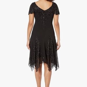 J Kara black cocktail midi dress short sleeve beaded hanky hem whimsigoth gatsby