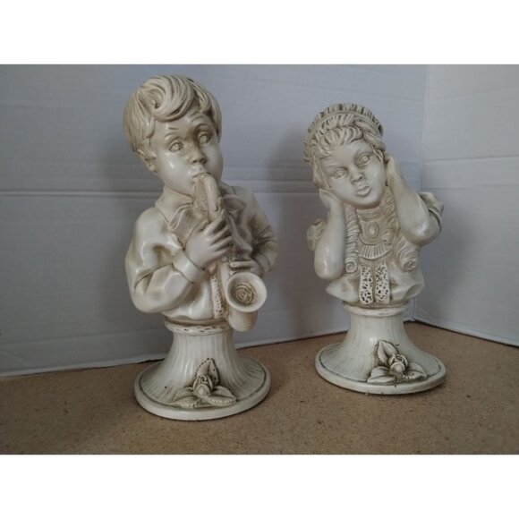 J Kendrick Universal Statuary Corp Chicago Bust Statue Saxophone Boy Girl 1971