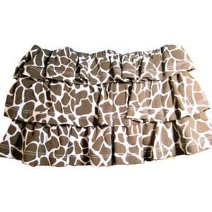 Three-tiered skirt in brown cobblestone pattern with pleats.