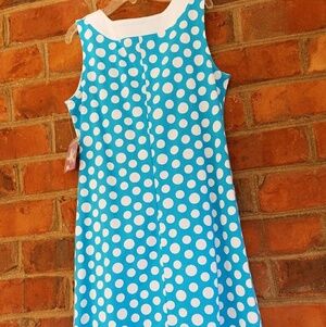 J Khaki Sheath Dress Kids Girls Medium Aqua White Polka Dot