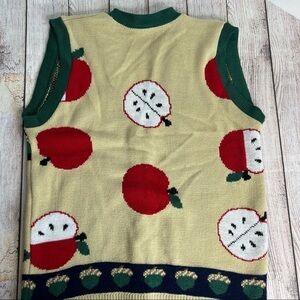 J Knits Vintage Fall Cardigan Vest size small. Gently used condition. Teacher, apples and pumpkins.