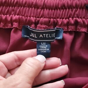 J & L Atelier Burgundy Pull On Dress Pants ~ High Rise ~ Sz L ~ 30.5" Inseam