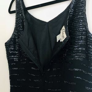 J Laxmi Black Beaded Sleeveless Shell Top M. This top is heavily beaded on both the front and back. It is a versatile piece that can be worn with pretty much anything to add a little sparkle and elegance to your evening. Wear alone or with a blazer. Pair with any color skirt or slacks to dress up your outfit. The open beaded neckline provides the perfect frame to show off your jewelry or alone.