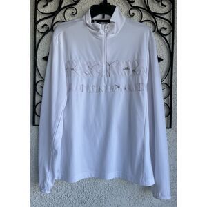 J. Lindeberg Bran Print Mid Layer Golf Pullover - Large- White/Gray