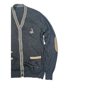 J Lindeberg Cardigan Sweater Mens XXL Fits Sz LARGE Gray Elbow Patch Pinehurst