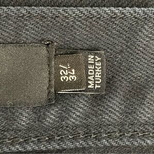 Size 32 X 34. Five pocket design. Logo on right front pocket. Rear right leather patch with logo. Excellent used condition.