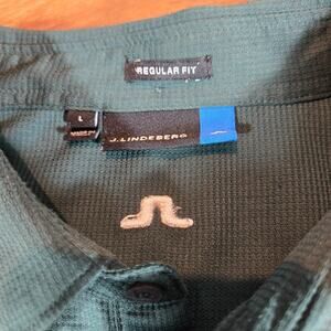 Premium golfwear ⛳ This J. Lindeberg men’s polo shirt in size large is crafted from lightweight green polyester with a regular fit. Perfect for golf, business casual, or everyday preppy style.