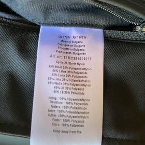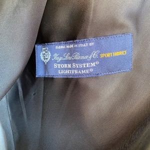 Made in Bulgaria. Wool/poly blend. Storm System Lightframe fabric made in Italy by Loro Piana & Co. Dry clean.