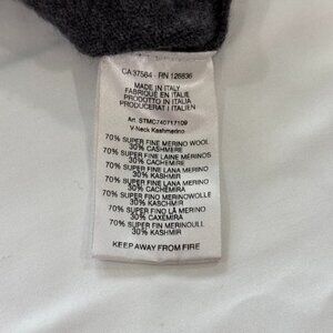 This sweater is in good pre-owned condition, showing some minor signs of wear consistent with normal use. The high-quality blend of merino wool and cashmere ensures it maintains its shape and soft feel.
