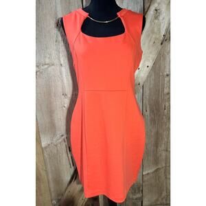 J Lo Dress Peek a Boo Neckline w/ Gold Accent Size 8 Jennifer Lopez Coral