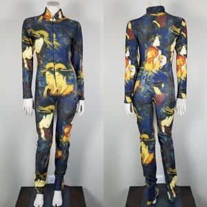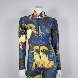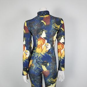 J. Lorraine Designs Kimmy Stretch Bodycon Jumpsuit In Geisha Print Size Medium