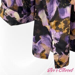 J M Collection Women's Purple Floral Button up Shirt Front Pockets Sz 16m