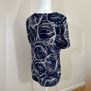 J M Collection sz lg top in navy with abstract white circles
