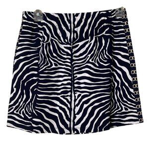 Elevate your wardrobe with this bold zebra print mini skort featuring striking gold chain accents and side pockets with zippers. Its unique design and versatile style make it a standout addition to your collection—comfortable and chic for day or night looks.