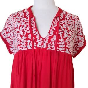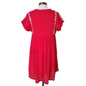 J MARIE Red Floral Embroidered Mini Dress Size Small Boho Boxy