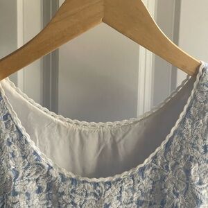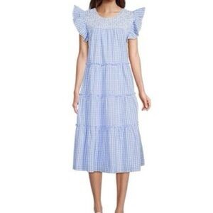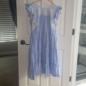 J. MARIE Women's Coco Midi Dress Blue White Gingham Lace Accent Prairie Tier XS