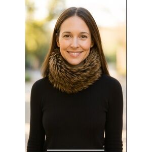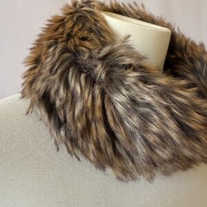 J.McLaughlin rabbit fur headband or neck warmer, fur collar, winter chic, luxury accessory, dressy elegance, cozy statement piece, cold weather style, plush texture, soft faux fur, timeless sophistication, holiday ready, evening glam, resort winter, polished classic, upscale layering, versatile neutral, rich brown tones, refined warmth, feminine luxe, preppy chic, Hamptons winter, elevated basics, sophisticated outerwear accessory, warm and stylish.