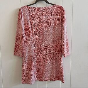 In great preloved condition from a smoke and pet free home. Please review all photos before purchase and bundle for a great price. Such an elegant tunic top. Pull over styling, quarter sleeves, cute pleated detail on the left side at the waist, stretchy Catalina cloth fabric.