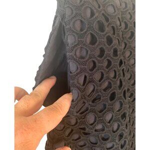 J. McLaughlin Black Layered Eyelet A-Line Pleated Midi-Length Skirt