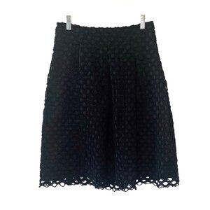 J. MCLAUGHLIN Black Layered Eyelet A-Line Pleated Midi-Length Skirt Size 2