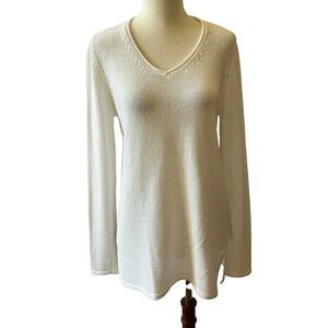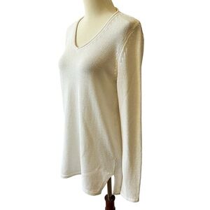 White, womens size Medium, v neck, long sleeves, open knit, pullover.