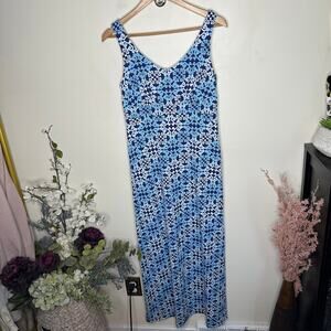 J. MCLAUGHLIN Catalina Cloth Brandisi Blue Ornate Scroll Maxi Dress Sz S {3R45}