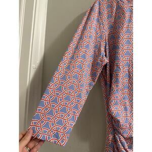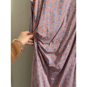 J. MCLAUGHLIN Catalina Cloth Red Blue Ruched 3/4 Sleeve Sheath dress Small