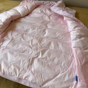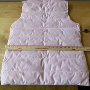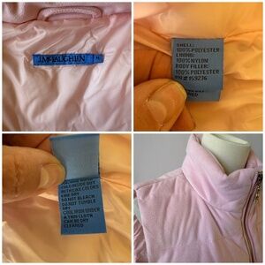 Size Medium, light pink, puffy, faux suede outer, quilted, full zip, zip pockets, stand up collar.