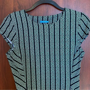 J MCLAUGHLIN Greek Key Mint & Navy Sheath Dress Catalina Cloth Size XS
