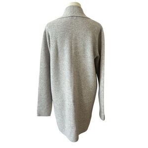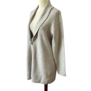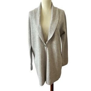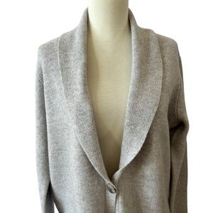 New without Tags, womens size Medium, neutral gray color, shawl collar, single button closure, long sleeves, long length.