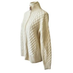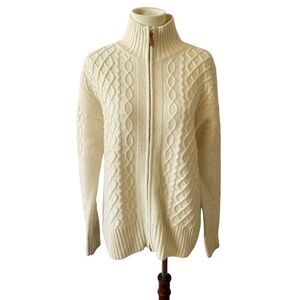 Size Small, ivory cream color, full zip, 100% merino wool, cable knit, fisherman style.