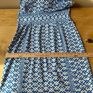 J MCLAUGHLIN LOLA DRESS M AUDIN GEO SHEATH OFFICE SUMMER CHIC FEMININE TIMELESS Womens size Medium, blue and white geometric pattern, sheath silhouette, side zipper, knee length, v neck, sleeveless. Elegant, timeless, sophisticated, flattering, feminine, polished, classic, versatile, chic, effortless, tailored, refined, breezy, lightweight, graceful, preppy, modern, day-to-night, structured, iconic. Excellent pre-loved condition Buy with confidence. I consider all reasonable offers. I ship daily!! Retail $208