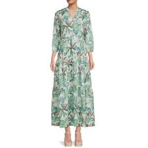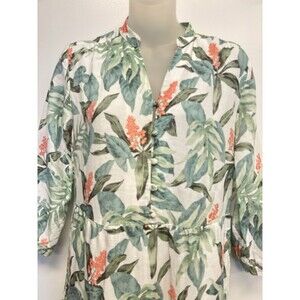 The J. McLaughlin Linen Cotton Floral Cunningham Palm Resort Maxi Dress in XS is a stylish and versatile piece perfect for various occasions. With a flattering V-neckline, button closure, and 3/4 sleeves, this dress features a beautiful floral print that adds a touch of bohemian and tropical charm. The lightweight fabric and oversized fit make it comfortable for all-day wear, while the tiered skirt adds a touch of flair. Ideal for travel, weddings, parties, work, or casual outings, this maxi dress is a must-have for any fashion-forward woman looking to add a touch of Resort Chic to her wardrobe.