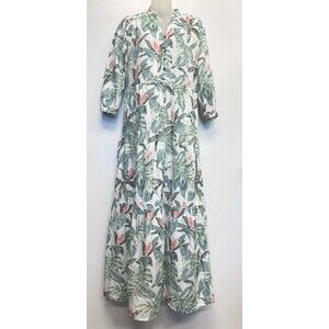 J. MCLAUGHLIN Linen Cotton FLORAL Print CUNNINGHAM PALM Resort MAXI Dress XS EUC