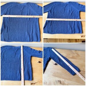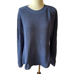 Size Medium, blueberry color, pull on, crewneck, loose knit linen blend, long sleeves.