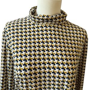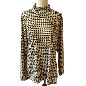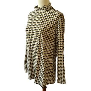 J MCLAUGHLIN NORA TURTLENECK TOP GEOMETRIC HOUNDSTOOTH PREPPY OFFICE MODERN RETRO L
