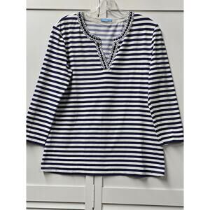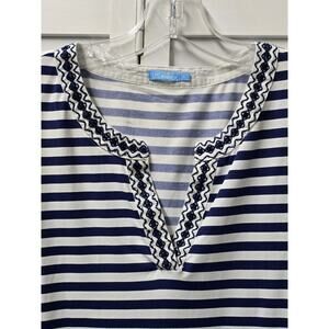 J MCLAUGHLIN Navy White Stripe Catalina Boca Tunic Top XLARGE 3/4 Sleeve