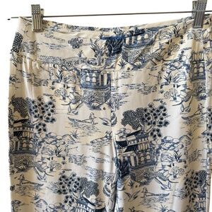 J McLaughlin, Catalina Cloth, pull on pants, straight leg, zip pocket, Asian print, chinoiserie, blue and white print, resort wear, travel pants, preppy classic, coastal chic, timeless style, stretch comfort, wrinkle resistant, luxury leisure, sophisticated casual, elegant print, polished look, boutique brand, everyday elegance, upscale comfort, modern classic, versatile wardrobe, tailored fit, lightweight knit, refined travel style, resort chic, spring summer fashion, effortless sophistication