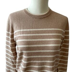 Oatmeal with cream stripes, womens size Small, cotton modal blend, soft, pull on, crewneck, long sleeves, side slits.