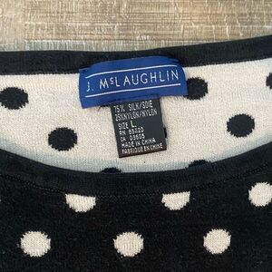 J. MCLAUGHLIN Silk Polka Dot Sweater Women’s Large Black White Knit Preppy Y2K