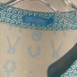 J MCLAUGHLIN LADIES SHIRT LARGE GREEN BLUE TUNIC SANTANA KNIT CASUAL EVERYDAY