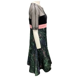 J. MENDEL TEAL MULTI LACE AND JACQUARD COCKTAIL DRESS