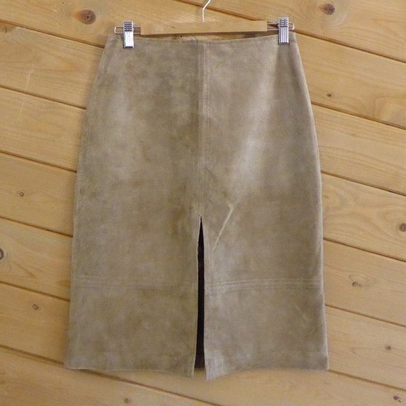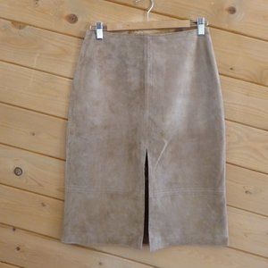 J. Marco Galleries Tan Pencil Straight Skirt Front Slit Suede Genuine Leather